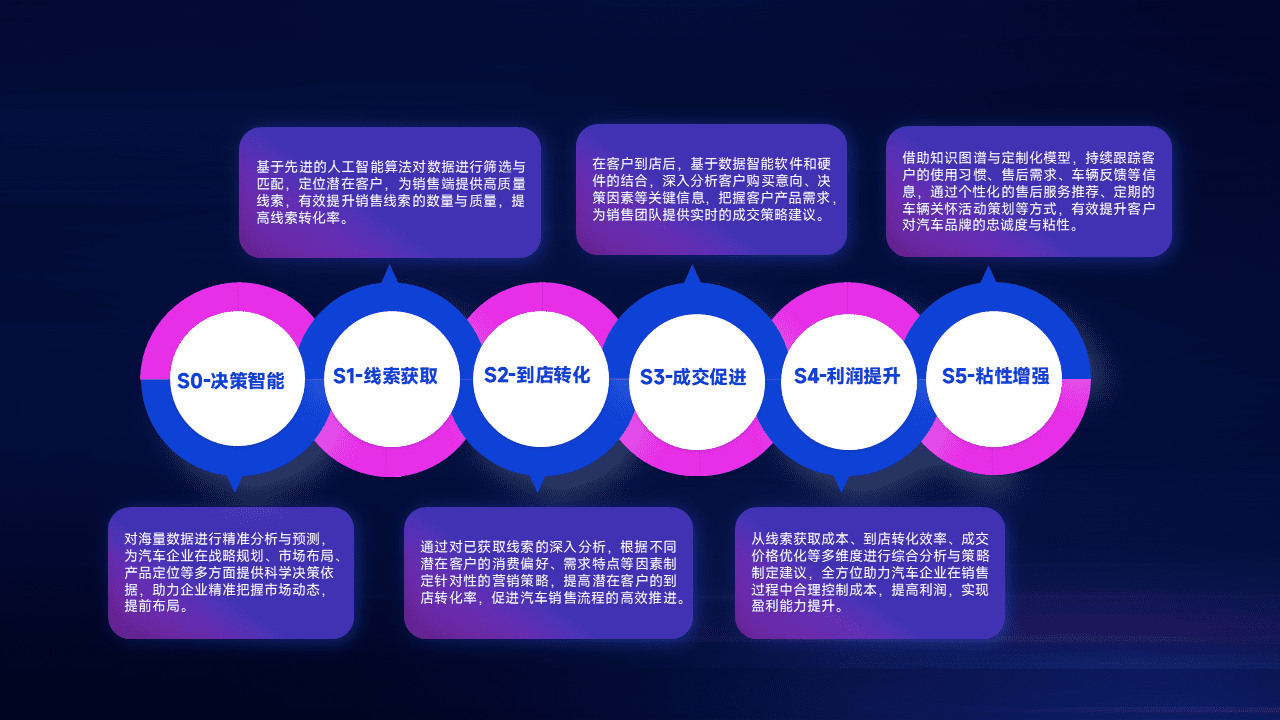 通过拓宽潜在客户来源、、、优化线索分配并提高到店转化率,,,,以增强销售效率。。。。同时,,,,利用线索数据不断优化分析模型,,,有效提升转化率,,,,扩大营销影响力。。